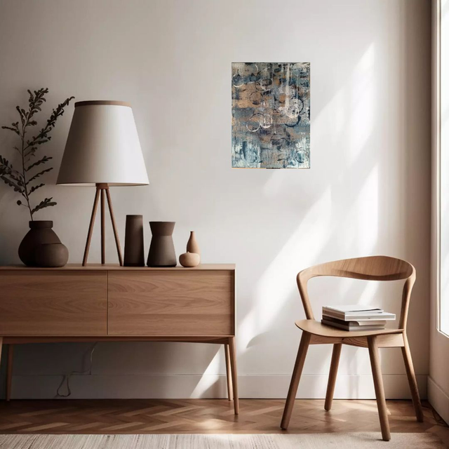 Admire the ethereal beauty of bubbles captured on canvas! Painted in shades of blue, indigo and grey, this artwork brings the fleeting and vibrant nature of bubbles to life. #Bubbles #Artwork