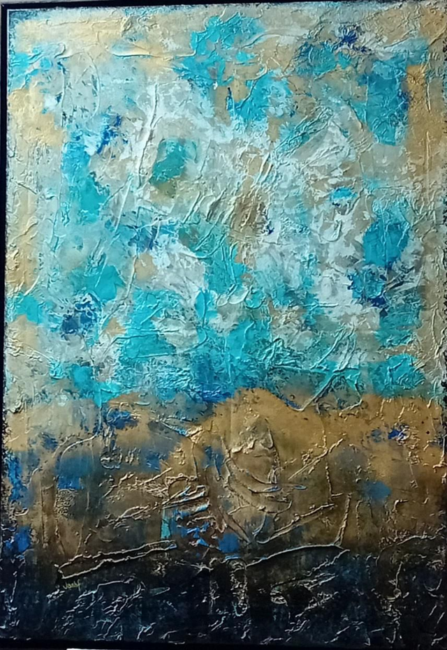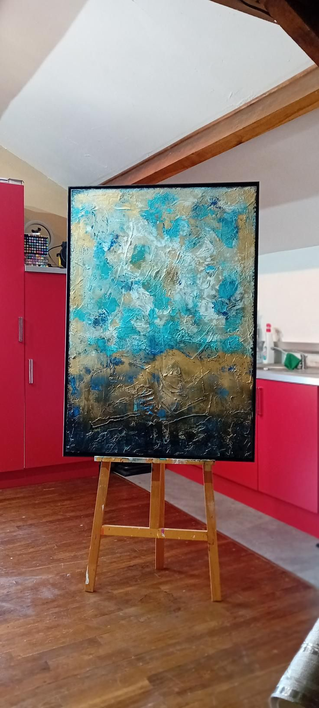 81cmx 117cm.....Acrylic on canvas, Mixed Media Artwork, finished with coats of varnish, edges of the painting are painted, Certificate of Authenticity.